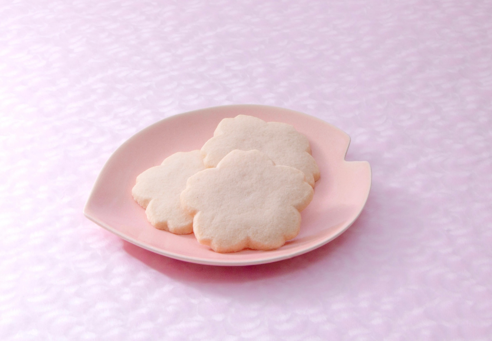 桜の花型に型抜きし、可愛らしいピンク色に仕上げました。